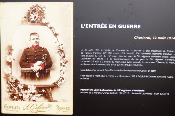 Un village normand dans la tourmente de la Grande Guerre, c’est un voyage qui plonge le visiteur cent ans en arrière pour lui permettre d’appréhender ce qu’a pu être la vie des gens en cet été 1918 : la vie des civils, ici au cœur du département de la Manche,  éloignés des combats, mais aussi la vie des soldats aspirés par cette guerre.