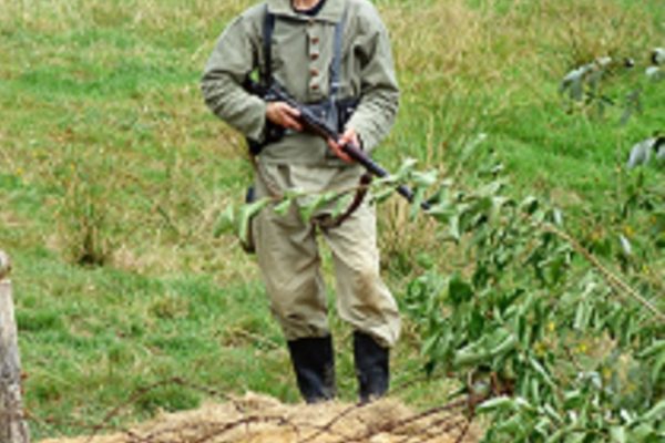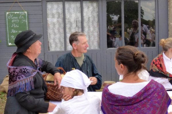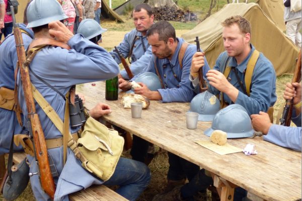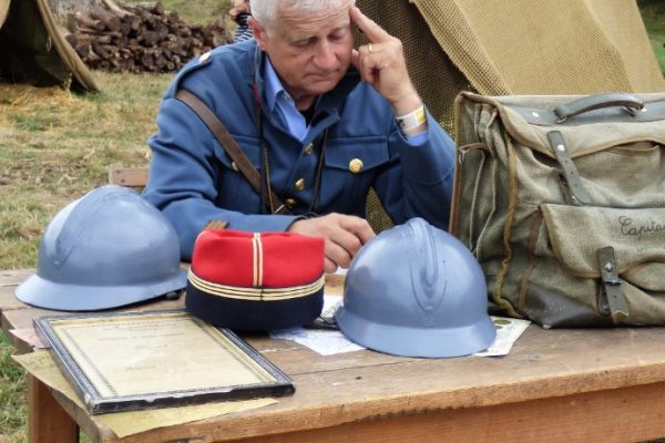 Guy VIEVILLE, présent à cette magnifique reconstitution, vous embarque dans la machine à remonter le temps. Au cours de ces trois journées, près de 200 bénévoles en costume d’époque, dans le Manoir de Guéhébert (Manche), placent les visiteurs dans le contexte de cette période et les plongent en 1918 en plein mois d’août. Pour ce faire, un village a été créé tel qu’il aurait pu exister en 1918. Ce village créé et inventé pour la cause s’appelle Saint-Aignan-sur-Vanne, 486 habitants, 118 feux.