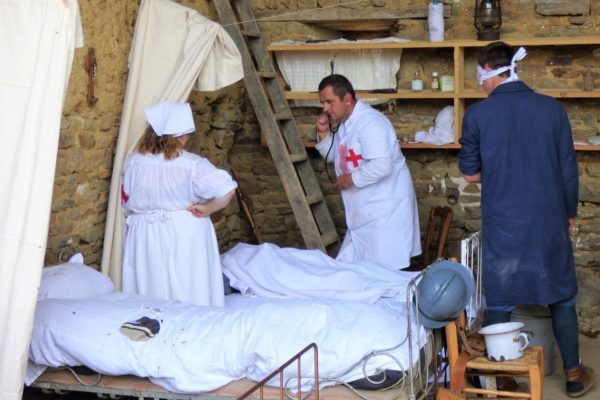 Passé le contrôle symbolisant le front, le visiteur devant présenter une « carte de circulation », pénètre dans la zone militarisée et se trouve confronté au cahot quotidien des combattants, qu’ils soient français ou allemands. Il y a d’abord l’hôpital de campagne où sont transférés les blessés pour y être soignés. Et puis en vis-à-vis, dans les tranchées, les Poilus font face aux Allemands. Nous appréhendons enfin la vie de nos Poilus au repos, à l’arrière, reprenant des forces en oubliant un peu la fournaise des combats.