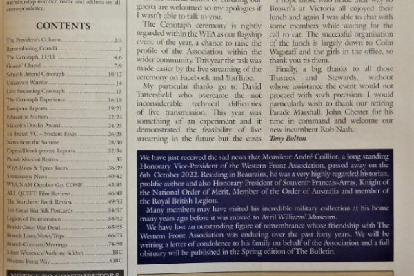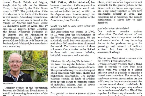 Notre adhérent néerlandais Michèl ADMIRAAL, également membre (European Field Officer) de la WFA, s’est entretenu avec notre Président Guy VIEVILLE. L’interview vient d’être publiée dans le bulletin papier de 80 pages n° 123 de décembre 2022 de la WFA. Le site de la WFA est www.westernfrontassociation.com