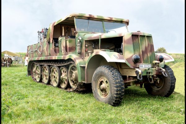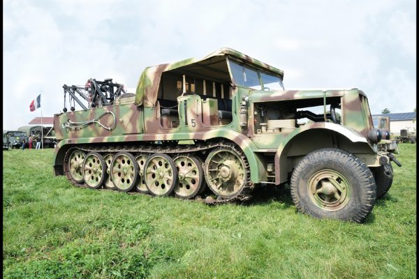 Alain PUECH vous invite à regarder les véhicules allemands F.A.MO SDKMZ, engins monstrueux de plus de 18 tonnes qui transportaient des pièces d’artillerie avec leur équipage.