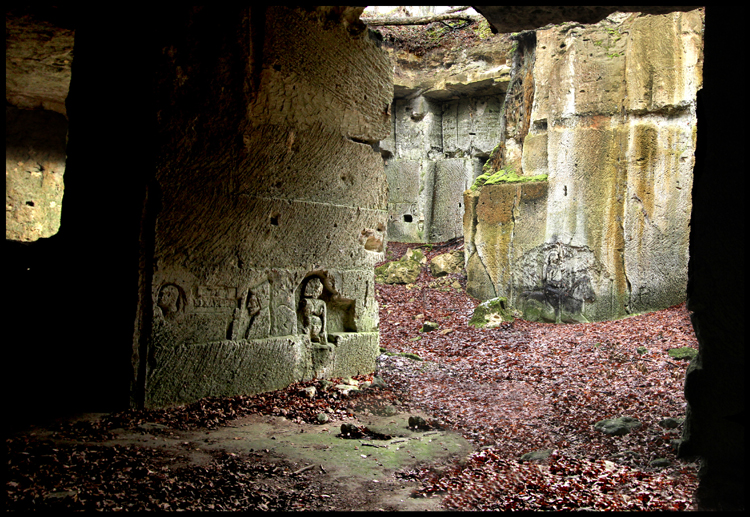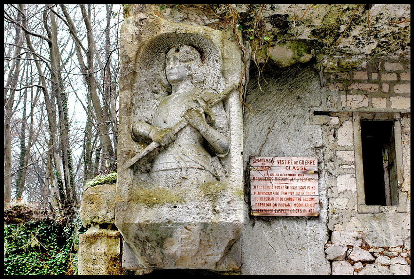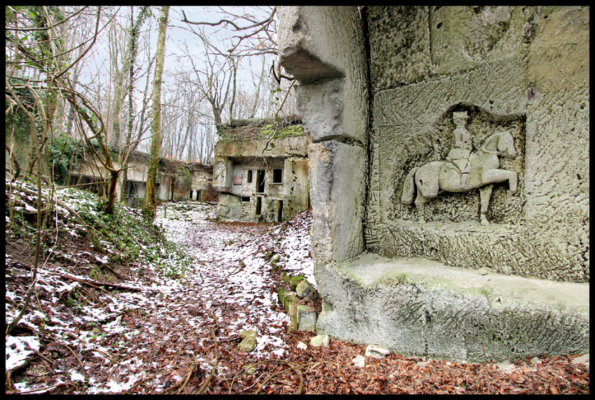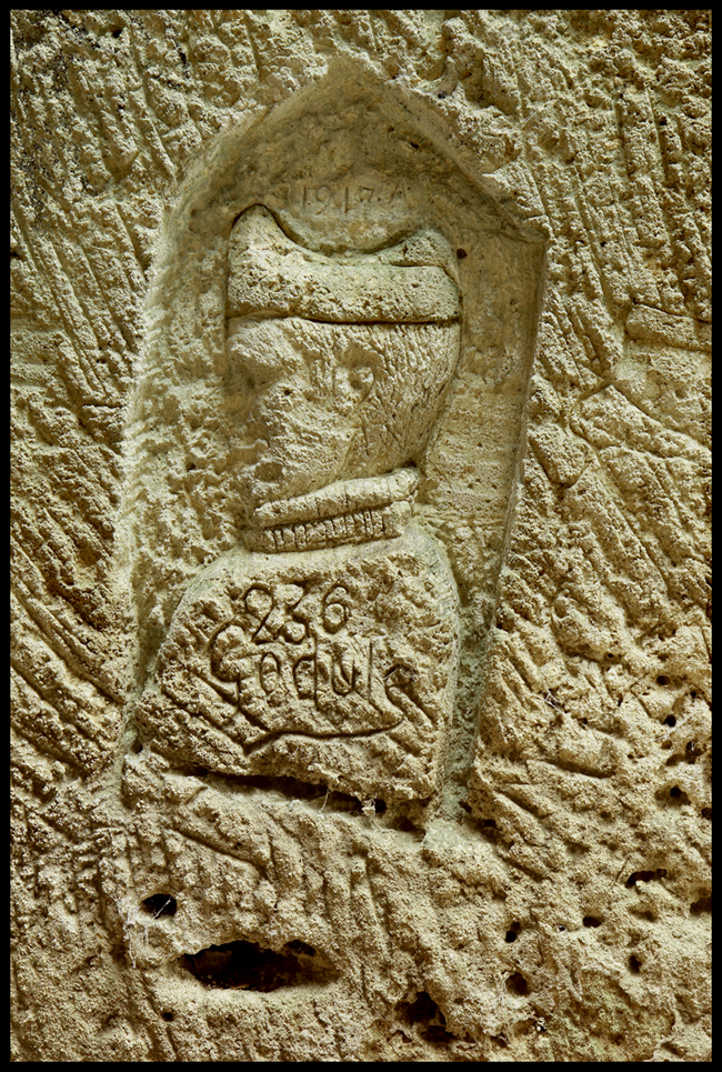Durant l’occupation de cette carrière, entre les corvées et servitudes, les soldats artistes vont bien travailler sculptant l’histoire sur les murs : croix de guerre, sphinx, cavalier sur sa monture, femmes sous différentes approches et, dans la chapelle souterraine, un très beau cartouche appelé « le Poilu au balcon » pièce magnifique située en hauteur et donc protégée du vandalisme.